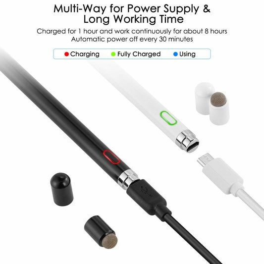 Lukt het niet om precies te werken met je vingers? Geen probleem deze iPad Active Stylus Pen Maakt nauwkeurige schetsen op jouw tablet, smartphone en laptop. Deze Stylus Pen beschikt over een nauwkeurige 1.45 mm punt en heeft een werkingstijd van 10 uur. Daarbij kun je de active stylus Pen gemakkelijk opladen via bijgeleverde USB kabel op een adapter, pc of andere USB poort. Let op hij is niet draadloos optelladen.